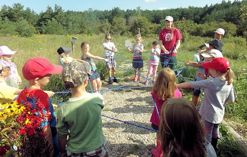 Mason demonstrated how everything in nature is connected by making a "web of life" with the children. She asked questions, and if answered correctly, the youngsters got to hold onto a rope and pictures of different creatures, creating the web of life.