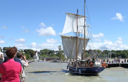 It was bright and sunny Friday afternoon but the high wind made the Lake Huron water choppy, as the Toronto Brigantine tall ships, "Pathfinder" and "Playfair," sailed into Kincardine Harbour for the second annual Kincardine Marine Heritage Festival this weekend.