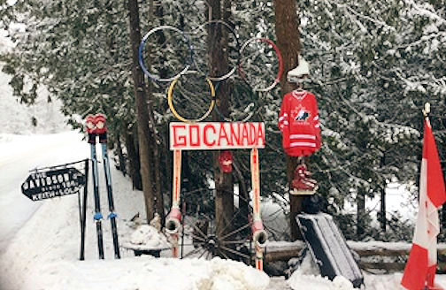 Every four years, for the Winter Olympics, I make a display on our roadside parking lot to show Canada that we are patriotic up here in the boonies on the Kemble Shore, and we cheer on our athletes.
