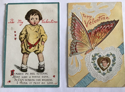 left (below) is addressed to Miss Marjorie Ritchie from Your Cousin, Isabelle, sent from Lindsay, Feb. 13, 1914. The mail must have moved pretty quickly in those days, even for one cent. Marjorie would have been four-and-a-half and Isabelle, daughter of Amy Edge and Tom Firth, one-and-a-half.