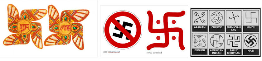 Sacred Hindu symbol for auspicious start to life, work, and religious occasions, and Nazi hakenkreuz symbol