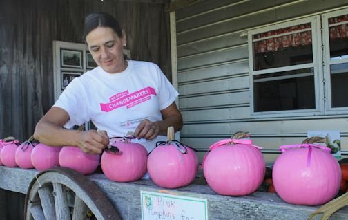 Donna Fitzgerald with her pink pumpkins, sold in support of the Canadian Breast Cancer Foundation, in 2016
