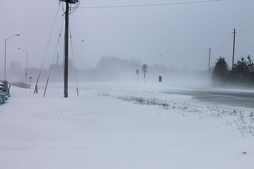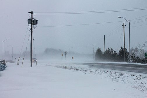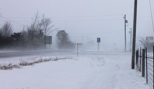 The combination of snow and high wind caused blowing and drifting snow which closed a section of Highway 21, between Amberley and Goderich.