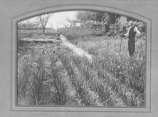 Retirement did not mean the cessation of farming. The garden behind the house was indeed a small “farm” with plots of vegetables and fruit all carefully laid out. Mum said woe-be-tide anyone who stepped off a path while visiting. There was a small stream at the top of the hill overlooking the lake where watercress grew. This was Grandpa’s garden in 1930.