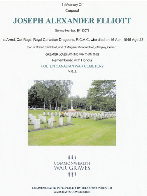 Joseph Alexander Elliott was born to Earl and Margaret Byers Elliott, Feb. 17, 1922. He was baptized along with his younger brother, Jim, May 8, 1927, in Bethel United Church.
