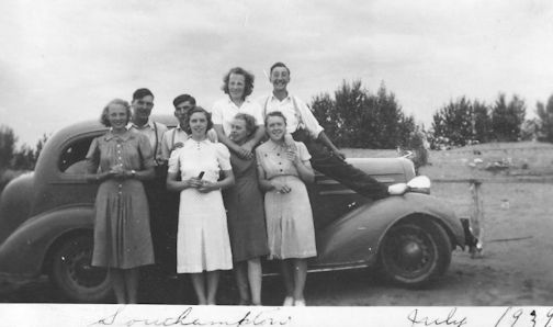 In the back, are Burton Slade (left), Cecil Hollands, Margaret Farrell, and Joe Elliott; and in front, Olive Farrell (left), Doris Pollock, June Elliott, and Evelyn Pollock; photos courtesy of Ruth Anne Hollands Robinson