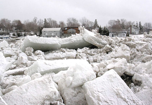Blocks of ice jam the Saugeen River mouth, some 20 years ago