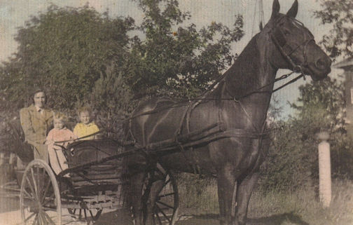Mum and I ready for a ride with Eveline Walden behind “Lady;” photo courtesy of Ruth Anne Hollands Robinson