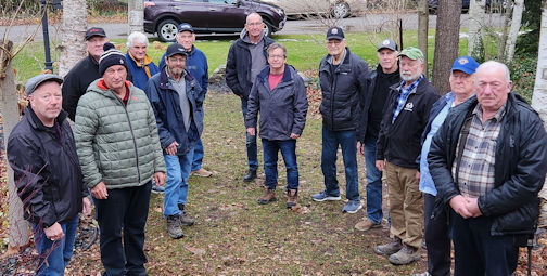 About a dozen volunteers prepare to deliver the Christmas hampers in the Ripley area; from left, are Dale Liddle, Ken Stanley, Ian Courtney, John Drzagza, Sandy Pollock, Donald Farrell, Don Simpson, Rob Miller, Bob Harris, John Elliott, James Walden, Alan MacDonald and Elliott Lowry; photo courtesy of the Ripley Hamper program committee