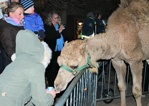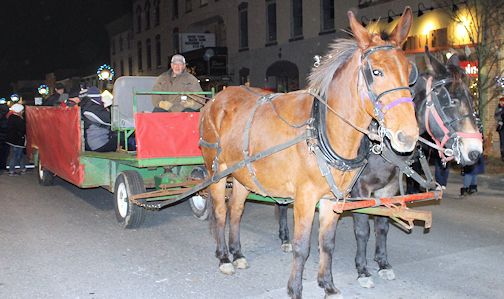 But that didn't slow down the crowd of adults and children who filled Queen Street for the many activities, including horse-drawn wagon ride;, a petting zoo with a camel, a llama, goats and donkeys; a live nativity scene put on by the Kincardine Ministerial Association; the Grinch, Blinky, and, of course, lots of shopping in the stores that stayed open late for the event.