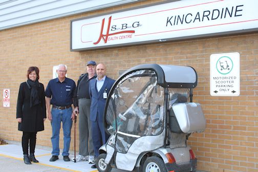 With the financial support of the Kincardine and Community Health Care Foundation, four scooter parking spots have been created at the entrance to the building, allowing for easy access for patients and visitors who use mobility scooters.