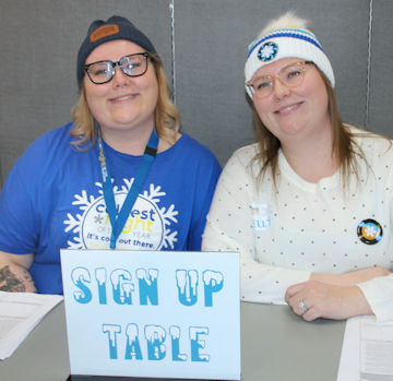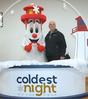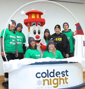 Teams gathered for photos with Blinky, Kincardine’s mascot, inside a framed snow globe, while volunteers ensured everyone was signed up and ready to walk.