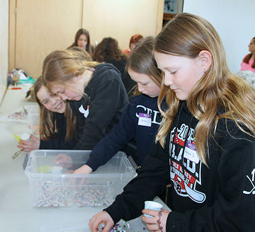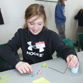 Smillie directed the group on the creation of garden marker stakes, using colourful beads strung on recycled wire hangers.