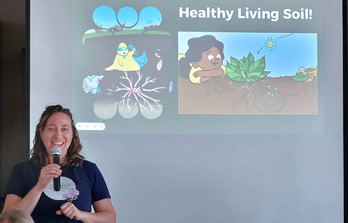 She outlined different kinds of soil, including sandy, loamy and clay, and emphasized that dirt is alive and full of various organisms, including worms, bugs, etc. It’s part of an eco-system which is a community that helps feed each other what everyone needs.