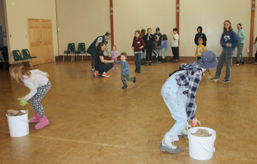 Then, while the adult members of the horticultural society held their business meeting, the youth went upstairs and played relay races and vegetable bingo.