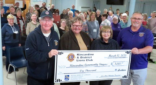 March 12, the Lions presented $1,000 to the Kincardine Community Singers to assist in that group’s ongoing expenses.