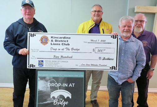 The first was March 7, when the Lions presented $500 to Wes Larson of Drop-In at the Bridge in downtown Kincardine.
