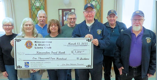 March 13, the Lions presented $1,200 to the Kincardine Food Bank. This is the club’s annual donation for the “Grub Tubs in the Schools” program which the Lions have sponsored for more than 20 years.