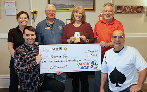 Rosanne Roy of Georgian Bluffs, just outside Owen Sound, has won the jackpot of $120,047 in the Catch the Ace progressive lottery, organized by the Kincardine Legion, Huron Shores Hospice, and the Tiverton Lions Club.