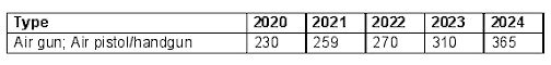 The data sheet (below) shows the number of replica or air guns in the West Region OPP’s possession.