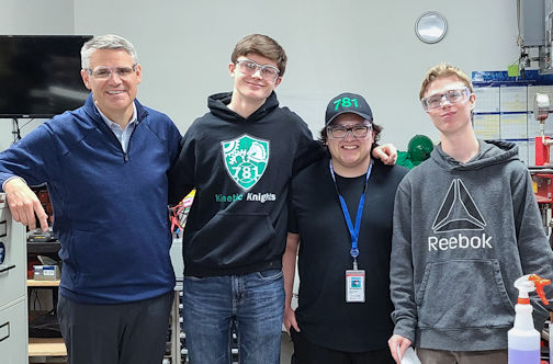 Bruce Power official impressed with Kinetic Knights robot during tour of shop