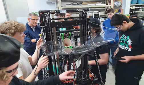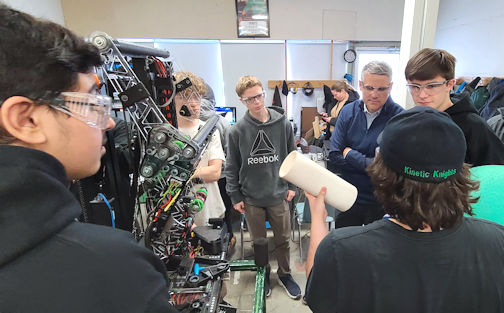 While he was impressed with the robot, Scongack was also pleased to have a tour of the shop on Lambton Street, Kincardine, where the team members learn a variety of skills, including the proper use of hand-tools, a mill and lathe, and training on computer-aided design (CAD), as well as administration skills, such as drawing up business plans, marketing and fund-raising, and public-speaking.