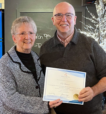 Kincardine mayor Kenneth Craig (right, with Pat Stewart) was on hand to present Stewart with a certificate of recognition for her years of service and commitment.