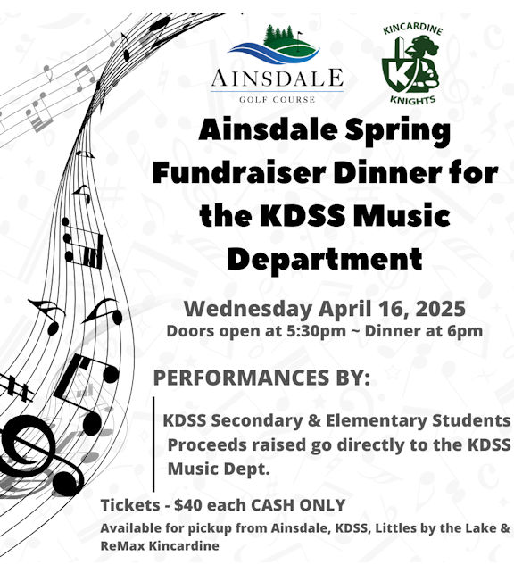 Tickets are $40 each, and 100 per cent of the proceeds go to the KDSS music department. Tickets are available (cash only) at Ainsdale, KDSS, Littles By the Lake, and ReMax Kincardine.