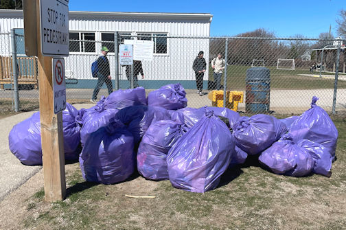 A pile of garbage bags was the result of a community trash pick-up by Grades 7-12 students at Kincardine District Senior School, Tuesday, marking Earth Day.