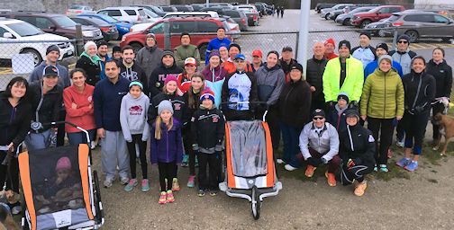 The group gathered at the Davidson Centre to support Adams who is committed to run 10 kilometres per day for 100 consecutive days, raising money for Big Brothers and Big Sisters of Kincardine and District.