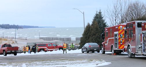 The Kincardine Fire Department is called to Kincardine Harbour, Saturday morning, after a pick-up truck went off the north pier into Lake Huron; photos by Liz Dadson