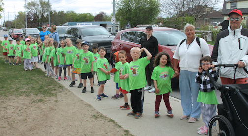 Following a warm-up routine, the group headed out on a three-kilometre walk down to the boardwalk, across to the Kincardine Lighthouse, under the Huron Terrace bridge and the Queen Street bridge, and back to the school for medals and refreshments.