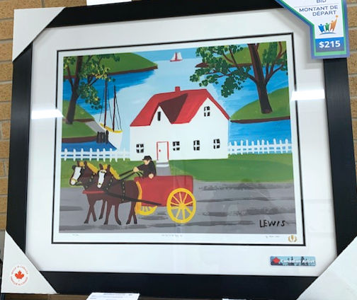 The print at the Kincardine Hospital is entitled, “Red Cart at Digby Gut” by Nova Scotian folk artist Maud Lewis.