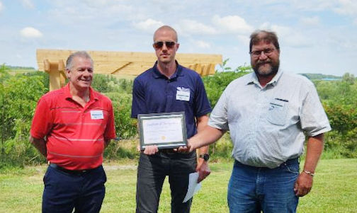 South Bruce mayor Mark Goetz (right) presents a certificate of recognition for the SVCA’s 75th anniversary, to Tom Hutchinson (left) and Erik Downing of the SVCA