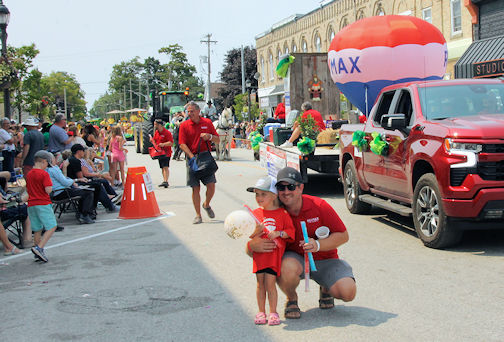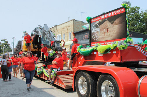 It featured about 100 entries, including numerous floats by local families, and three pipe bands – the Kincardine Scottish, Teeswater Highlanders and Clinton Pipes and Drums - as well as floats representing businesses, corporations, and organizations from Ripley and the surrounding area.
