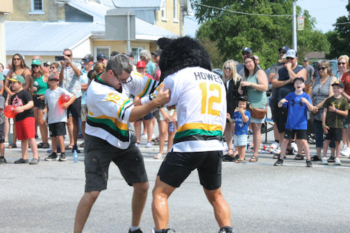 A number of floats used water guns and water balloons to help cool down the crowd, and at one point, as the Ripley Wolves float made its way past the four-way stop, an orchestrated “fight” broke out between new general manager Mike Howes and captain Garrett Meurs.