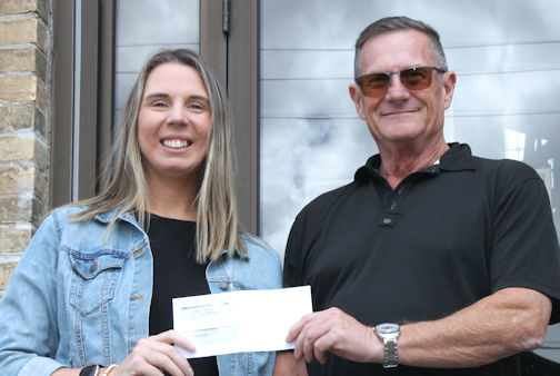 Rev. Dan West (right) of Knox Presbyterian Church, Kincardine, presents a $1,000 donation to Deirdre Carroll, executive director of the Big Brothers and Big Sisters of South Bruce North Huron