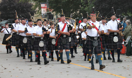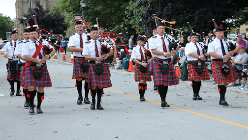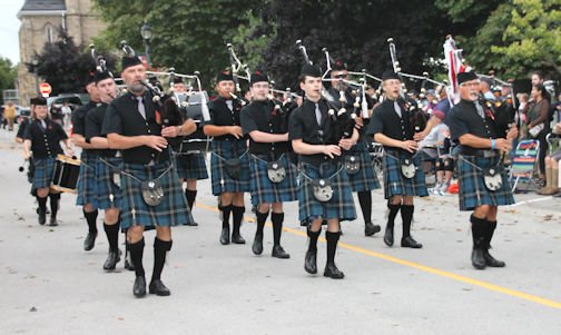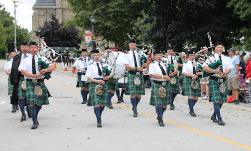 Also performing, were the Teeswater Highlanders Pipe Band, Clinton Legion Pipe Band, Ingersoll Pipe Band, Sarnia Legion Pipe Band, and the Eliza Jane Ceilidh Band. Later, the City of Brantford Pipes and Drums joined in the massed band parade.