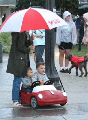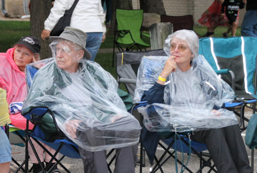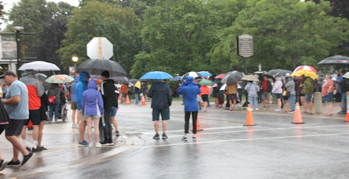 Unfortunately, the rain that had been threatening all day, finally poured down just as the parade was lining up. And for the first time ever, the Saturday Night Parade headed out before 8 p.m. (about 10 minutes early), marching through the heavy rain to Quinn Plaza and then back to the park for a brief concert.
