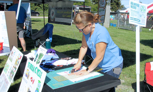 Amanda Saxton of KEAN cuts up old shirts to make T-shirt yarn, during a demonstration at the Kincardine Fall Fair, Saturday; photo by Liz Dadson
