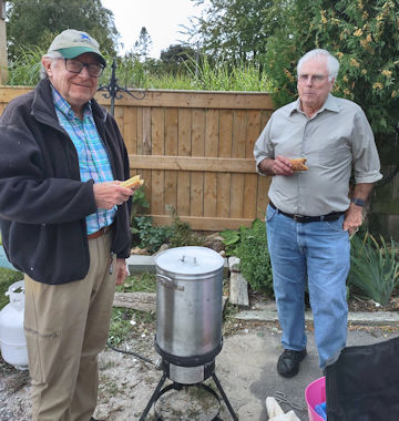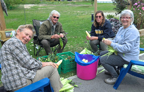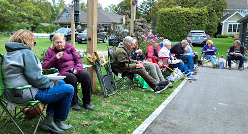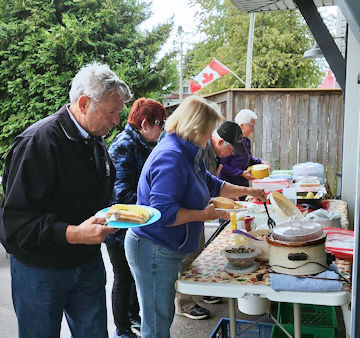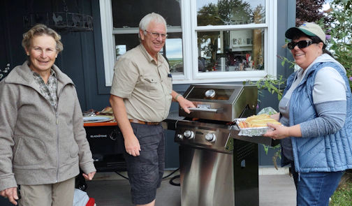 The group gathered behind the beautiful lakefront home of hostess Patricia Leonard in Point Clark, out of the wind to enjoy hot dogs, corn and a wonderful selection of side dishes and desserts. The hot drinks were particularly appreciated this year.