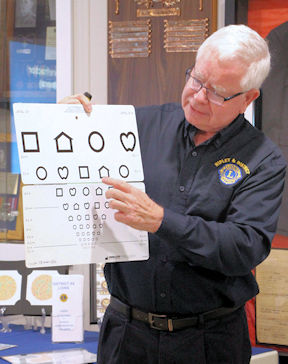 Liddle displayed and demonstrated many of the tools and materials used by volunteers to test visual acuity, stereo-vision and colour-blindness. Woven into his presentation were stories that underscored the importance of early detection and correction of vision impairment in young students.
