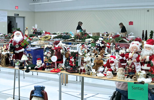The Kincardine Hall at the Davidson Centre in Kincardine is laden with Christmas decorations, festive ribbons and wrapping paper, Santa Clauses of every size and description, artificial trees, lights and much more.