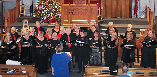Kincardine Community Singers director Patt Lowry (in blue) leads this ensemble in a couple of songs during the concert