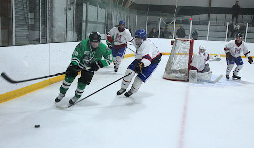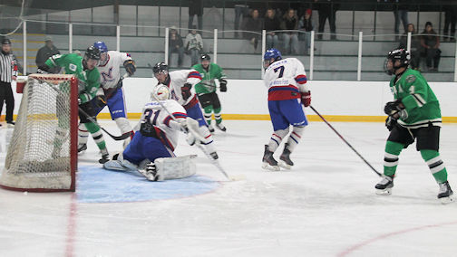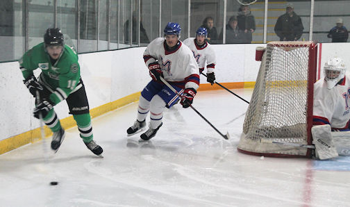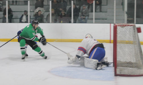 Goalie Jason Hamilton was strong in the Wolves net, particularly in the first period when he stopped 13 shots, on his way to the win.