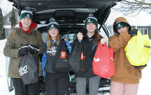 “I am beyond thrilled with the generosity of the community and the hard work and effort of the students who spent three hours in snowy weather going door-to-door,” said staff advisor Kathy Cottrill. “I am using this revival of the Christmas Knights as a foundation-building year. We had 18 enthusiastic teams participating, in both elementary and secondary levels, covering routes all across Kincardine and one in the Huron-Kinloss neighbourhood south of Saratoga Road. That is a lot of ground to cover and the students hustled to do their best.
