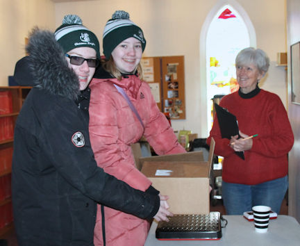 Eighteen teams of students, in Grades 7-12, and their volunteer drivers travelled throughout the Town of Kincardine, gathering up non-perishable items and then dropping them off at the Kincardine Anglican Church of the Messiah where food bank volunteers gratefully accepted them and packed them into crates and boxes to be stored.