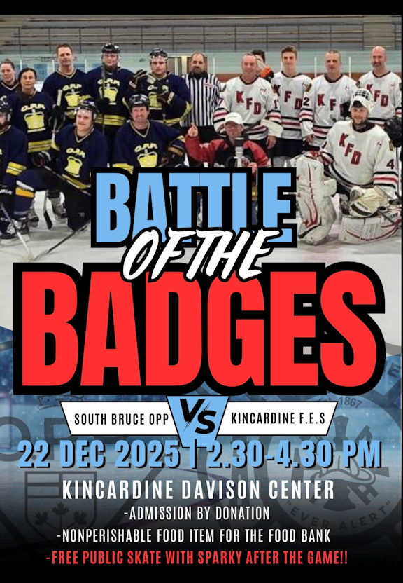The South Bruce OPP will take on Kincardine Fire and Emergency Services, Monday, Dec. 22, from 2:30-4:30 p.m., at the Davidson Centre.