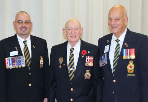Irv Kennedy (centre) receives his 35-year membership pin at the Kincardine Legion Honour and Awards evening in 2022