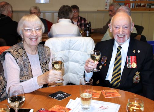 Irv Kennedy (right) and his wife, Donna Wilson, raise a glass at the Kincardine Legion New Year's Levee in 2019